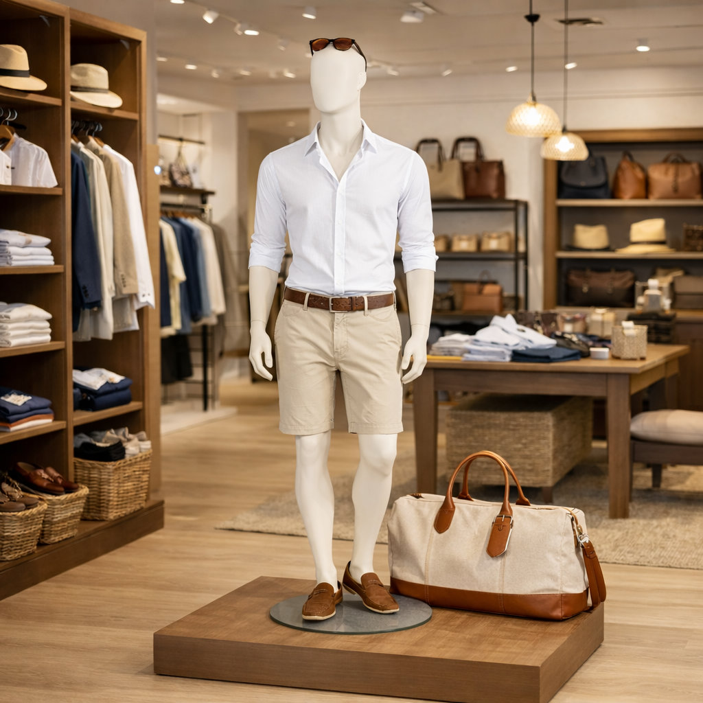 - Lieferumfang: Schaufensterpuppe inkl. runder Glasstandplatte