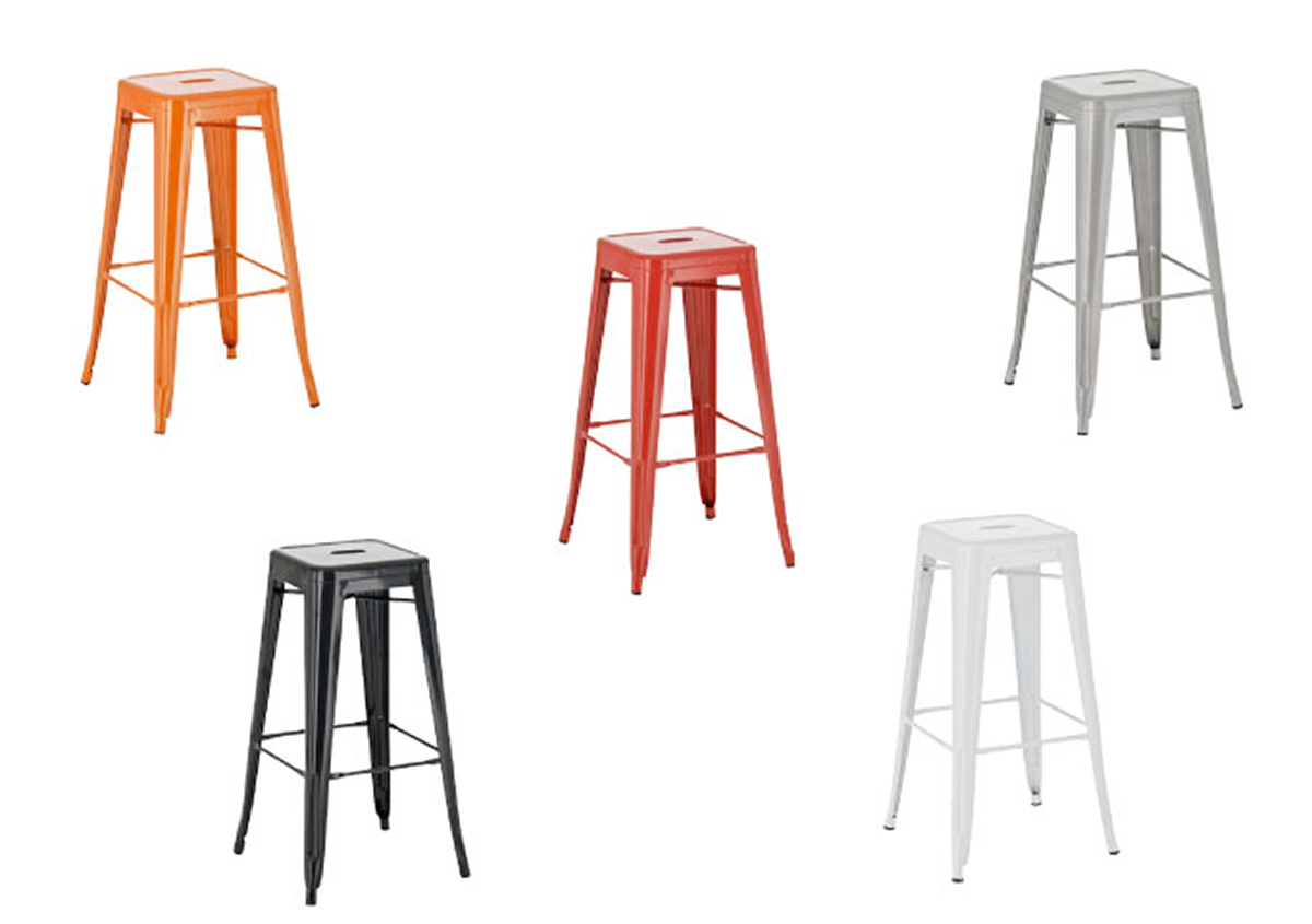 Dieser Barhocker aus pulverbeschichtetem Metall zeigt immer wahrhaftige Standfestigkeit. Sowohl zwischen den Standbeinen als auch unter der Sitzfläche befinden sich Querstreben, welche für eine hohe Stabilität sorgen - Erstere dienen zugleich als bequeme Fußstütze.