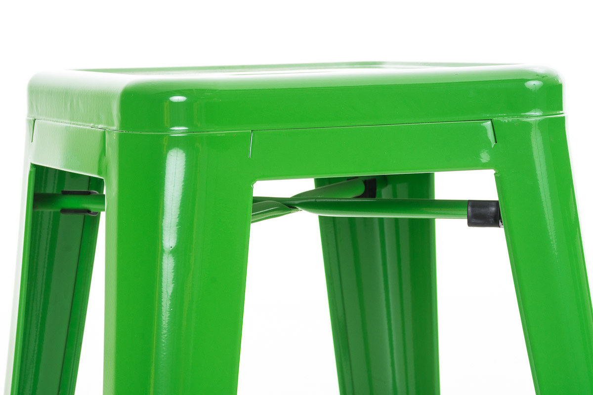 Dieser Barhocker aus pulverbeschichtetem Metall zeigt immer wahrhaftige Standfestigkeit. Sowohl zwischen den Standbeinen als auch unter der Sitzfläche befinden sich Querstreben, welche für eine hohe Stabilität sorgen - Erstere dienen zugleich als bequeme Fußstütze.