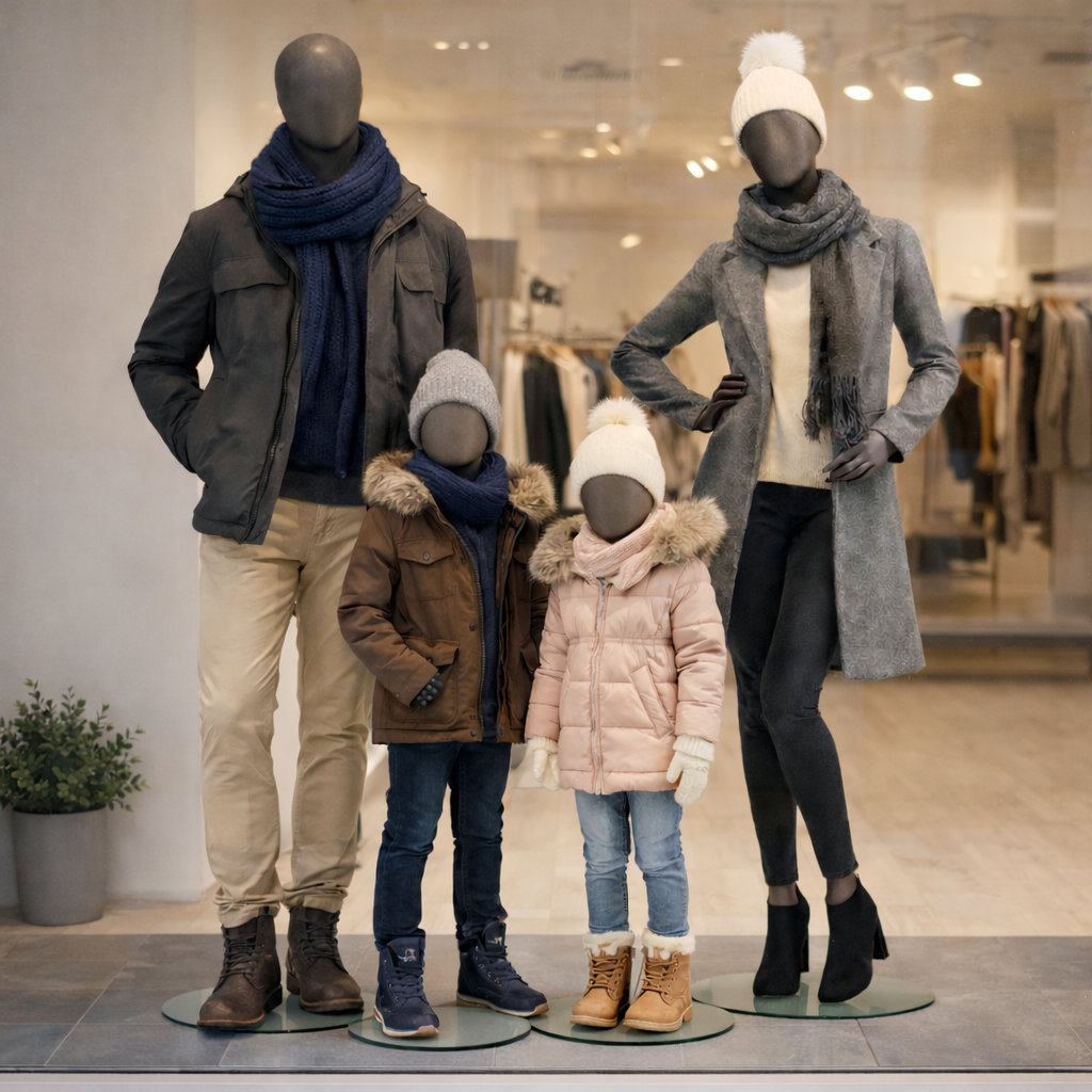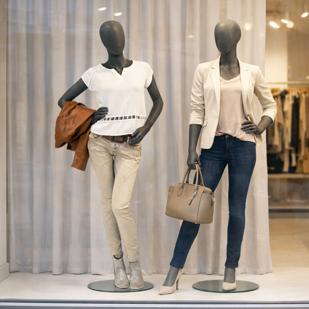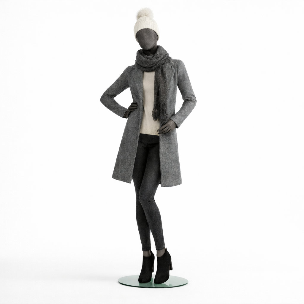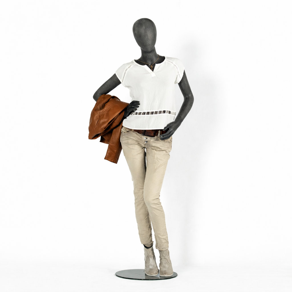 - Lieferumfang: Schaufensterfigur inkl. runder Metallstandplatte