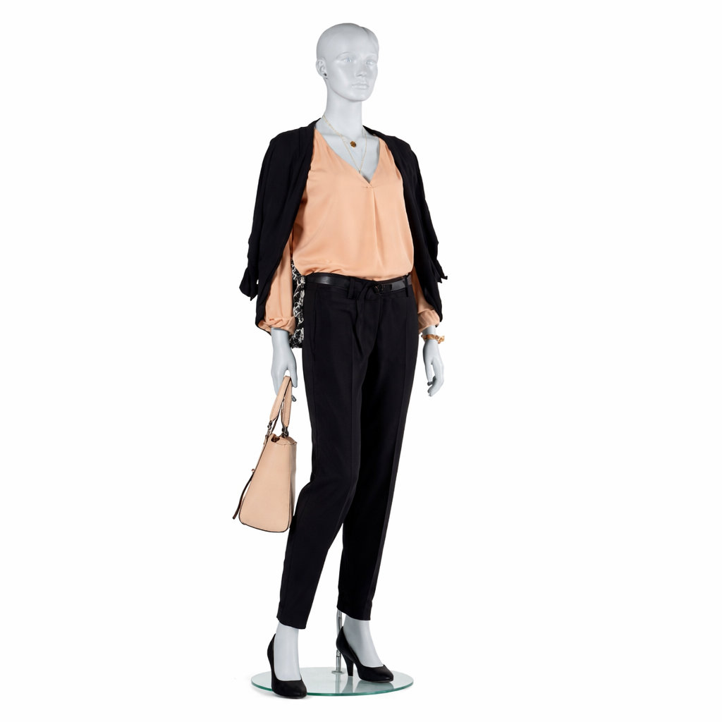 - Lieferumfang: Schaufensterpuppe inkl. runder Glasstandplatte