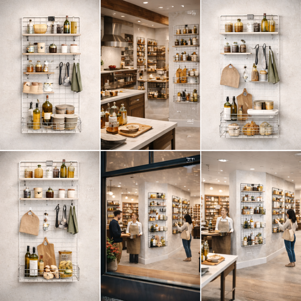 Die hochwertige Deko-Wandgitter im Set Bist optimal in jeder Textil Ladeneinrichtung im Einzelhandel einsetzbar.