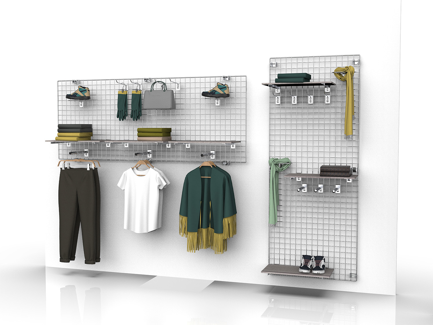 So kann Ihre Ladeneinrichtung mit dem verchromten Deko Drahtgitter-Set individuell und sehr modern gestaltet werden.