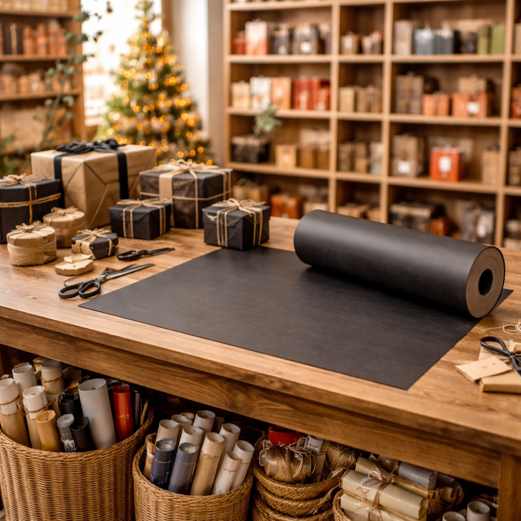 Das Geschenk-Papier ist einseitig bedruckt und ca. 400 m lang. Die Grammatur ist 50 g/m². Das Papier ist 50 cm breit und wiegt ca. 10 kg. Das Geschenk-Papier hat die moderne Farbe Schwarz. Der Preis gilt pro Rolle.