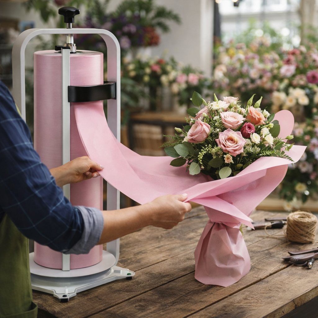 Der Papier-Senkrechtabroller ist für Papierrollen mit 50 cm und 75 cm Breite geeignet.