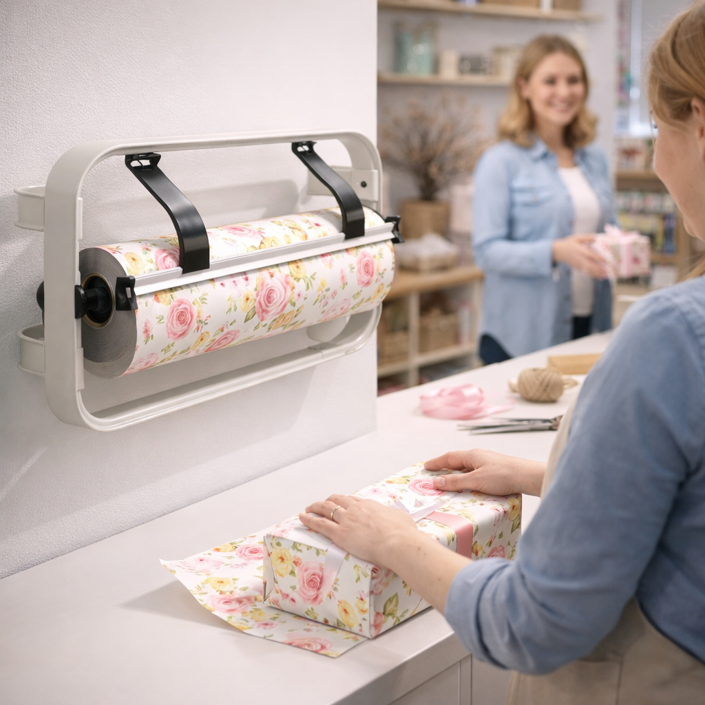Der robuste Papier-Wandabroller ist die perfekte Lösung zum sauberen und schnellen Abrollen von Packpapier oder Geschenkpapier. Dank seiner stabilen Stahlkonstruktion lässt sich der Abroller problemlos an der Wand befestigen und spart wertvollen Platz.