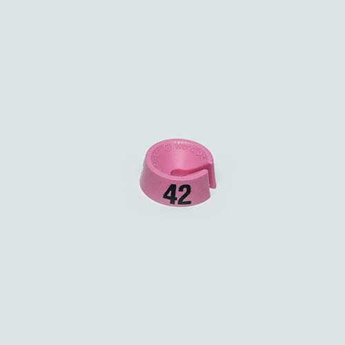 - Größenfinder für Kleiderbügel in rosa mit schwarzem Aufdruck