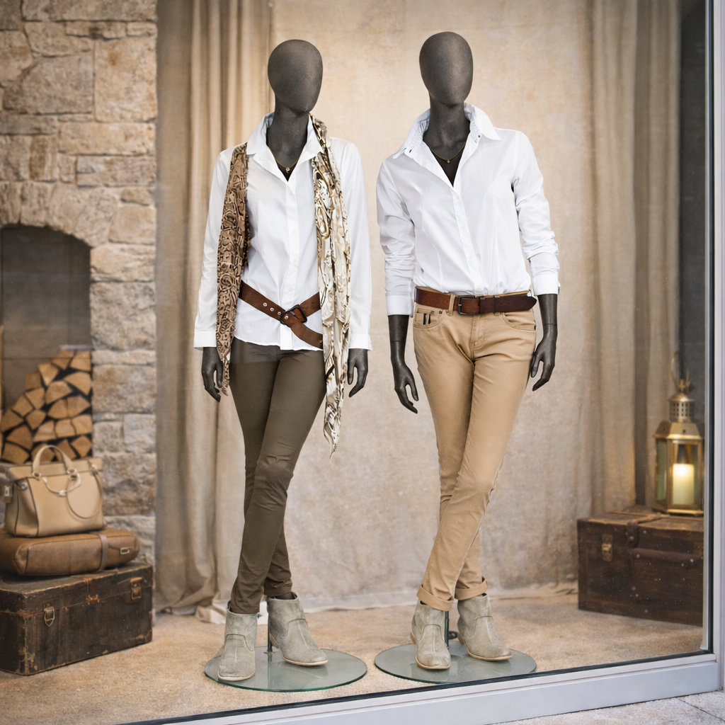 - Lieferumfang: Schaufensterfigur inkl. runder Metallstandplatte