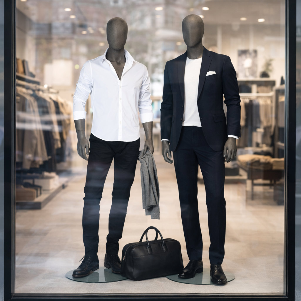 - Lieferumfang: Schaufensterfigur inkl. runder Metallstandplatte