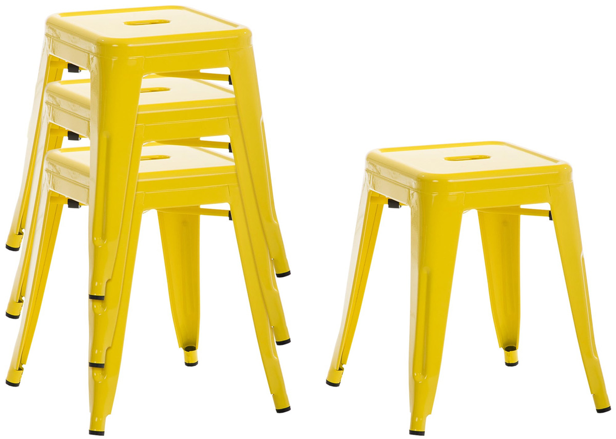Praktisch: Die lackierte Oberfläche ist extrem pflegeleicht und kann mühelos mit einem feuchten Tuch gereinigt werden. Bei Platzmangel kann der Hocker einfach im Handumdrehen gestapelt werden.