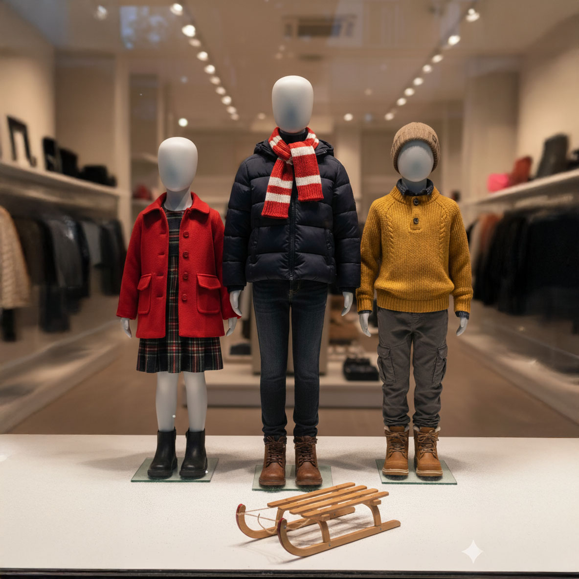- Lieferumfang: Kinder-Schaufensterpuppe inkl. runder Glasstandplatte