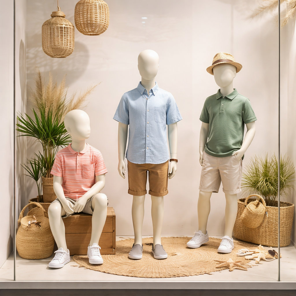 - Lieferumfang: Kinder-Schaufensterpuppe inkl. runder Glasstandplatte, Kit mit Aufbauanleitung, Handschuhe, Radiergummi
