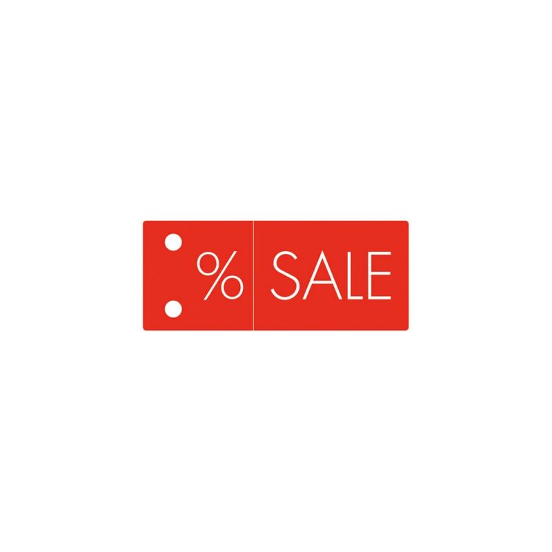 Das auffällige Kleiderbügel-Schild dient zur Kennzeichnung von reduzierter Kleidung und wird in Verpackungseinheit á 50 Stück geliefert. Das auffällige Plastik-Schild ist in der Farbe Rot mit weißem SALE und %-Zeichen Aufdruck.