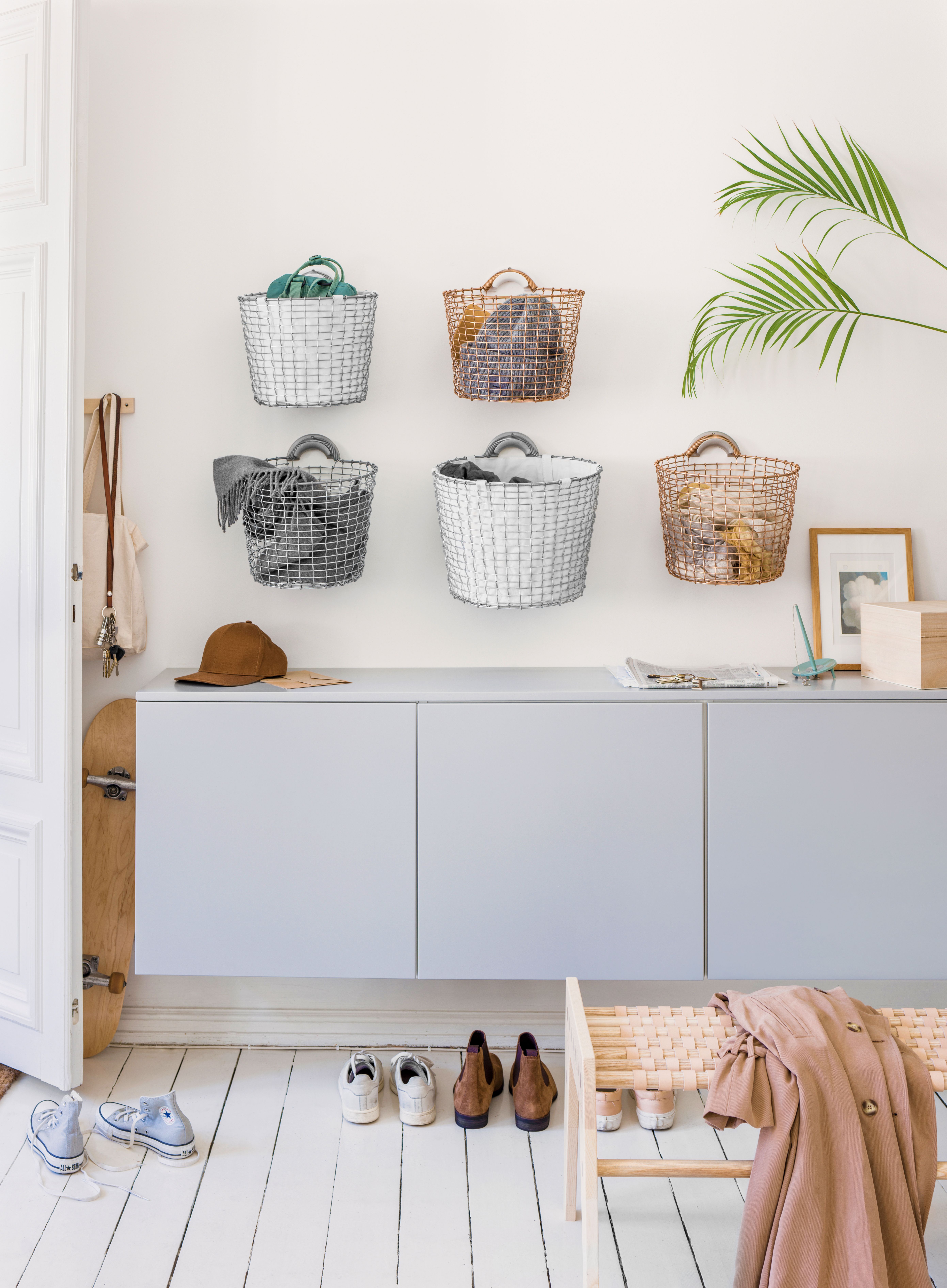 Dieser Korb kann als Einzelstück verwendet oder mit dem Korbo Aufhänger an der Wand befestigt werden.