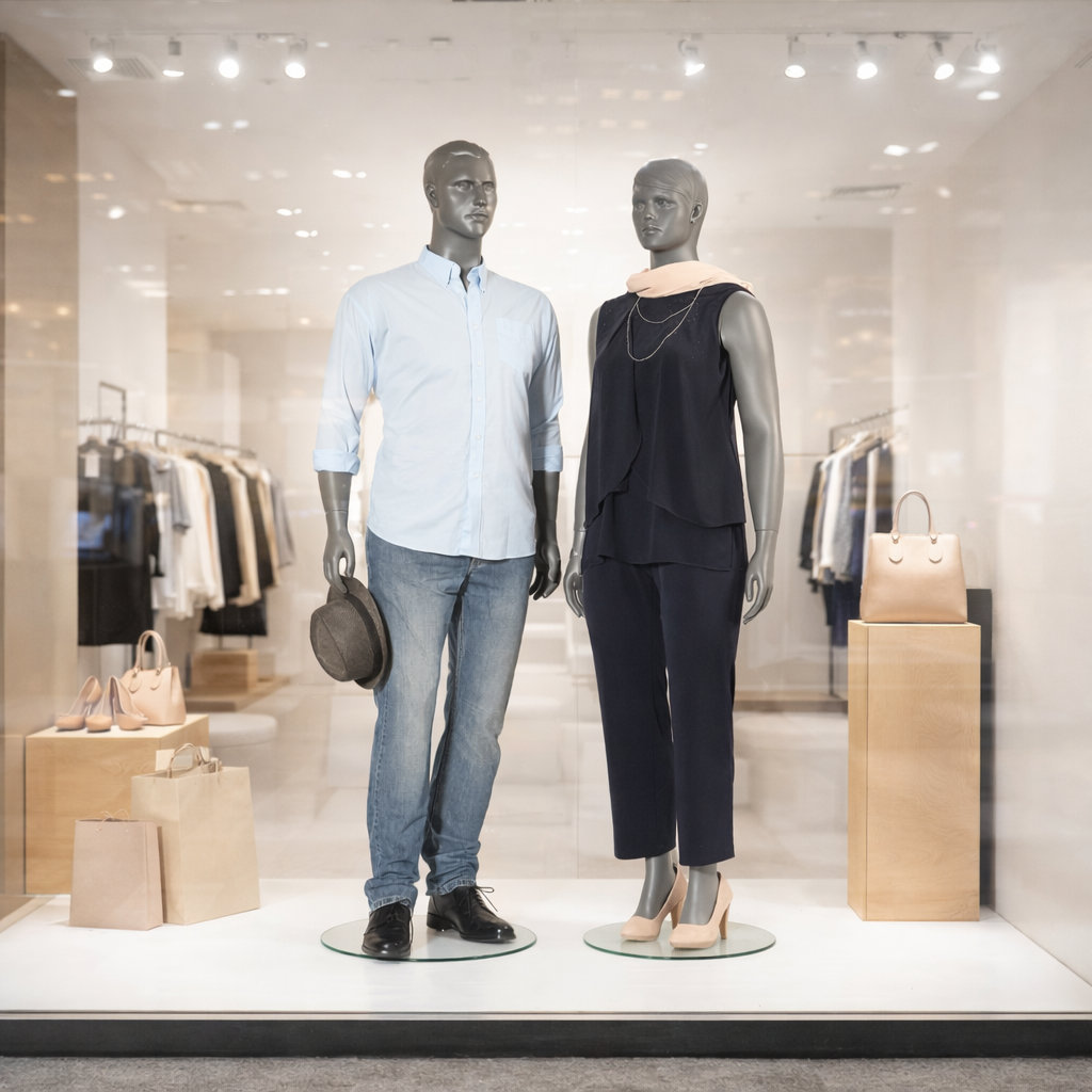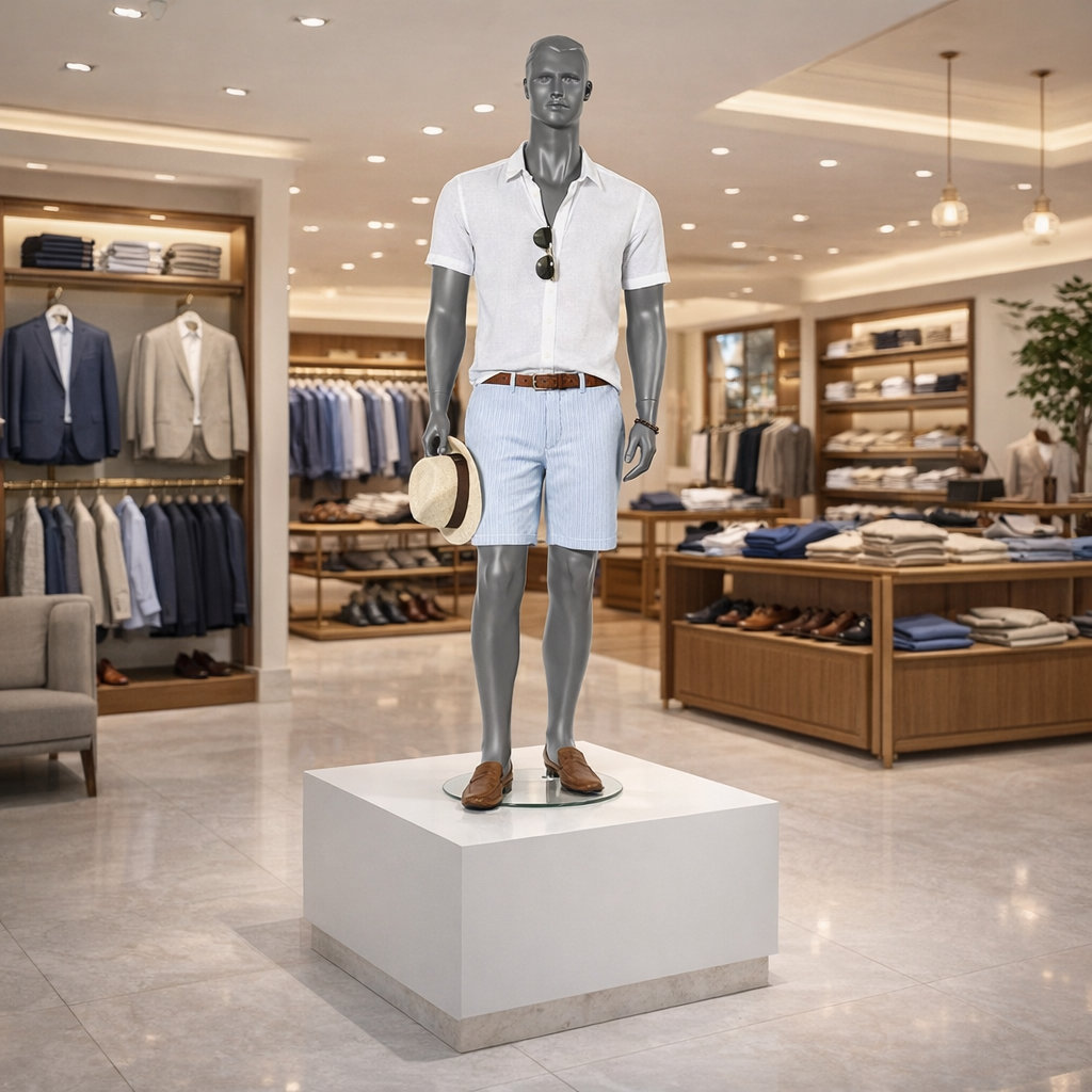 - Lieferumfang: Plus-Size-Schaufensterpuppe inkl. runder Glasstandplatte