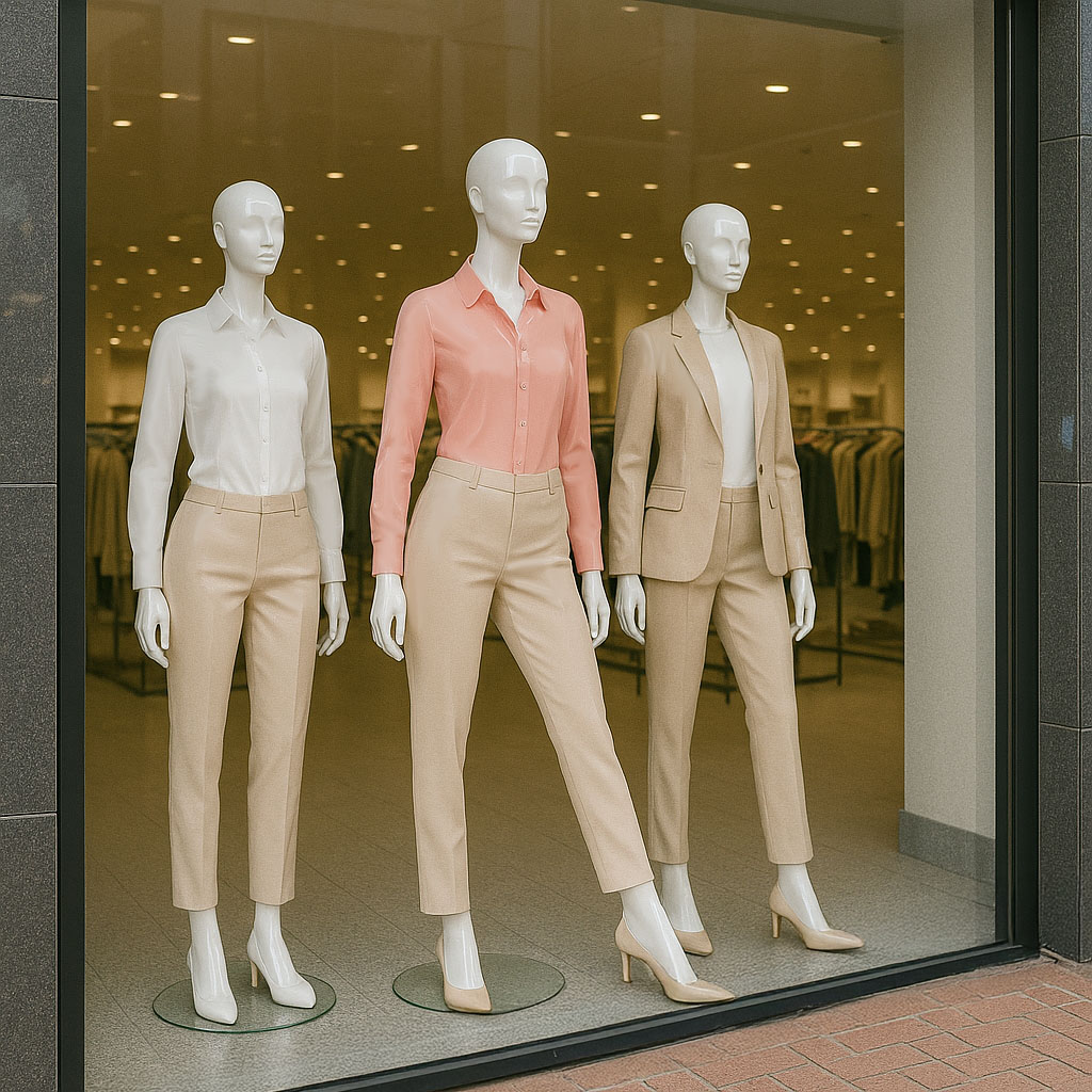 - Lieferumfang: Schaufensterpuppe inkl. runder Glasstandplatte