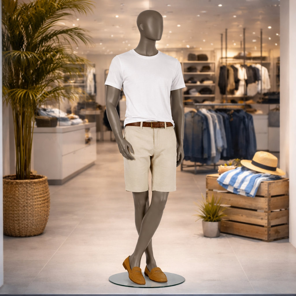 - Lieferumfang: Schaufensterpuppe inkl. runder Glasstandplatte