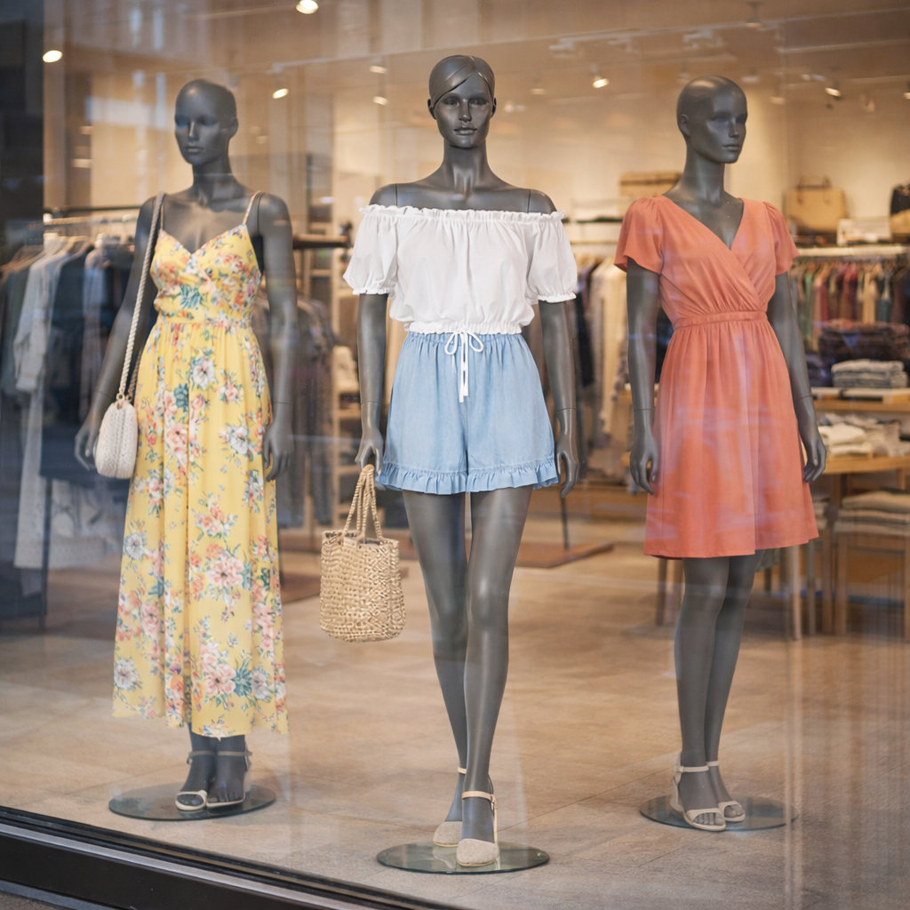 - Lieferumfang: Schaufensterpuppe inkl. runder Glasstandplatte
