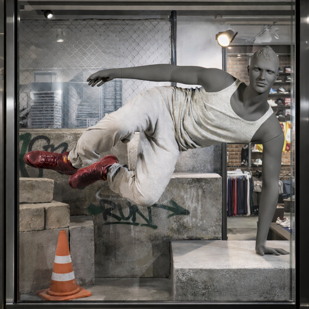 - Spezialfitting am Arm: verstärkte Armverbindung für hohe Stabilität bei dynamischen Posen