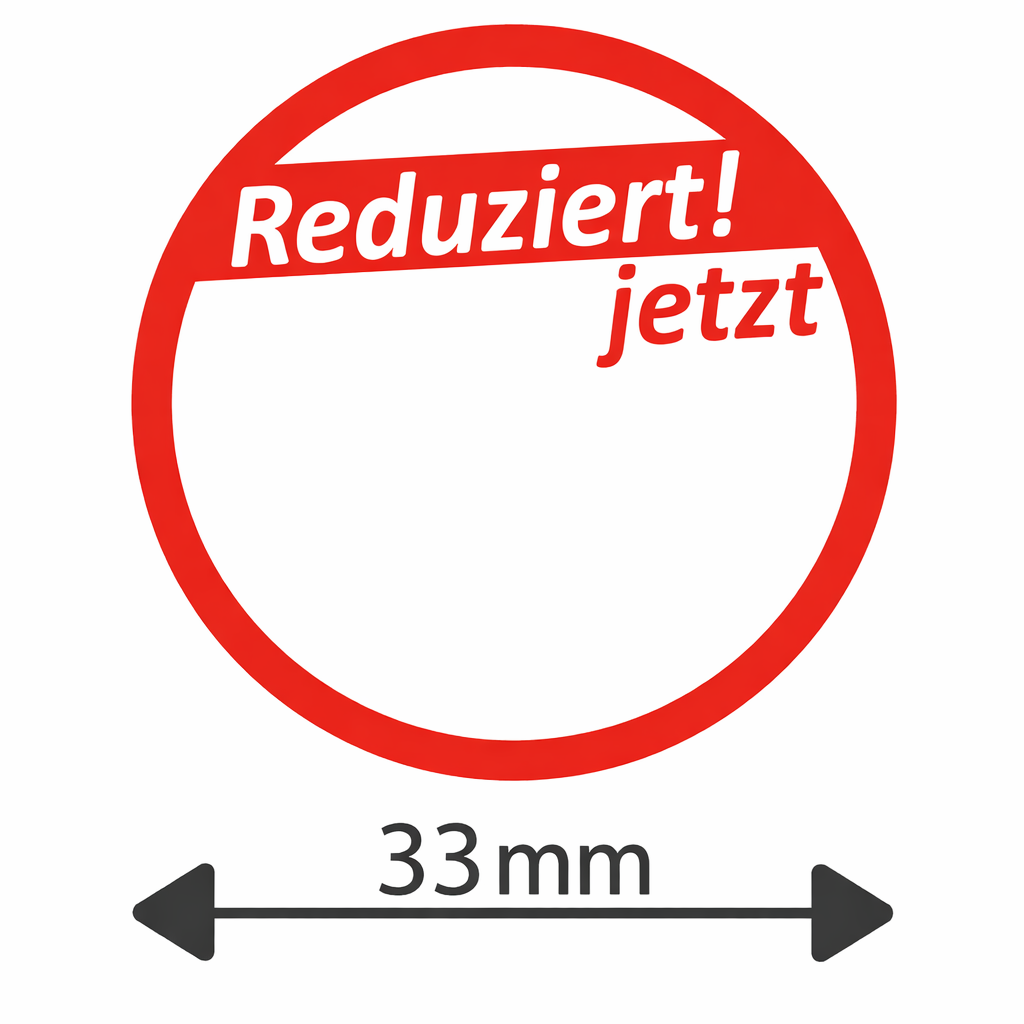 - Preisetiketten Rund 33 mm in Weiß mit Aufdruck "Reduziert! Jetzt"