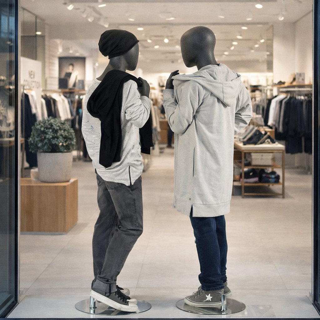 - Lieferumfang: Kinder-Schaufensterfigur inkl. runder Metallstandplatte