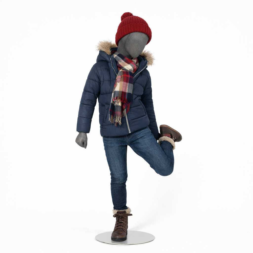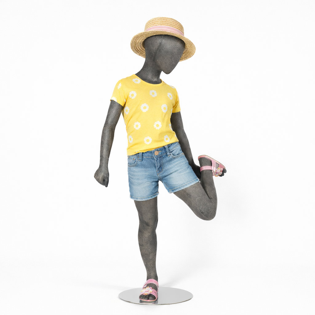 - Lieferumfang: Kinder-Schaufensterfigur inkl. runder Metallstandplatte