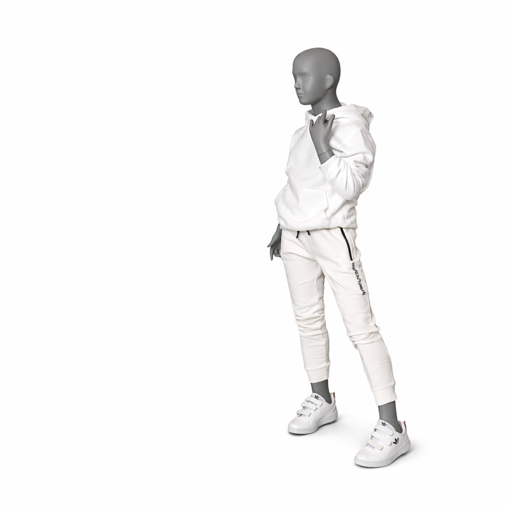 - Lieferumfang: Kinder-Schaufensterpuppe inkl. Metallstandplatte (30 × 30 cm), Handschuhe, Aufbauanleitung und Radiergummi