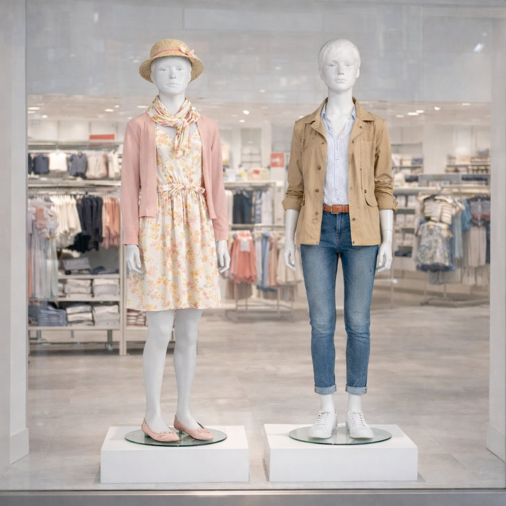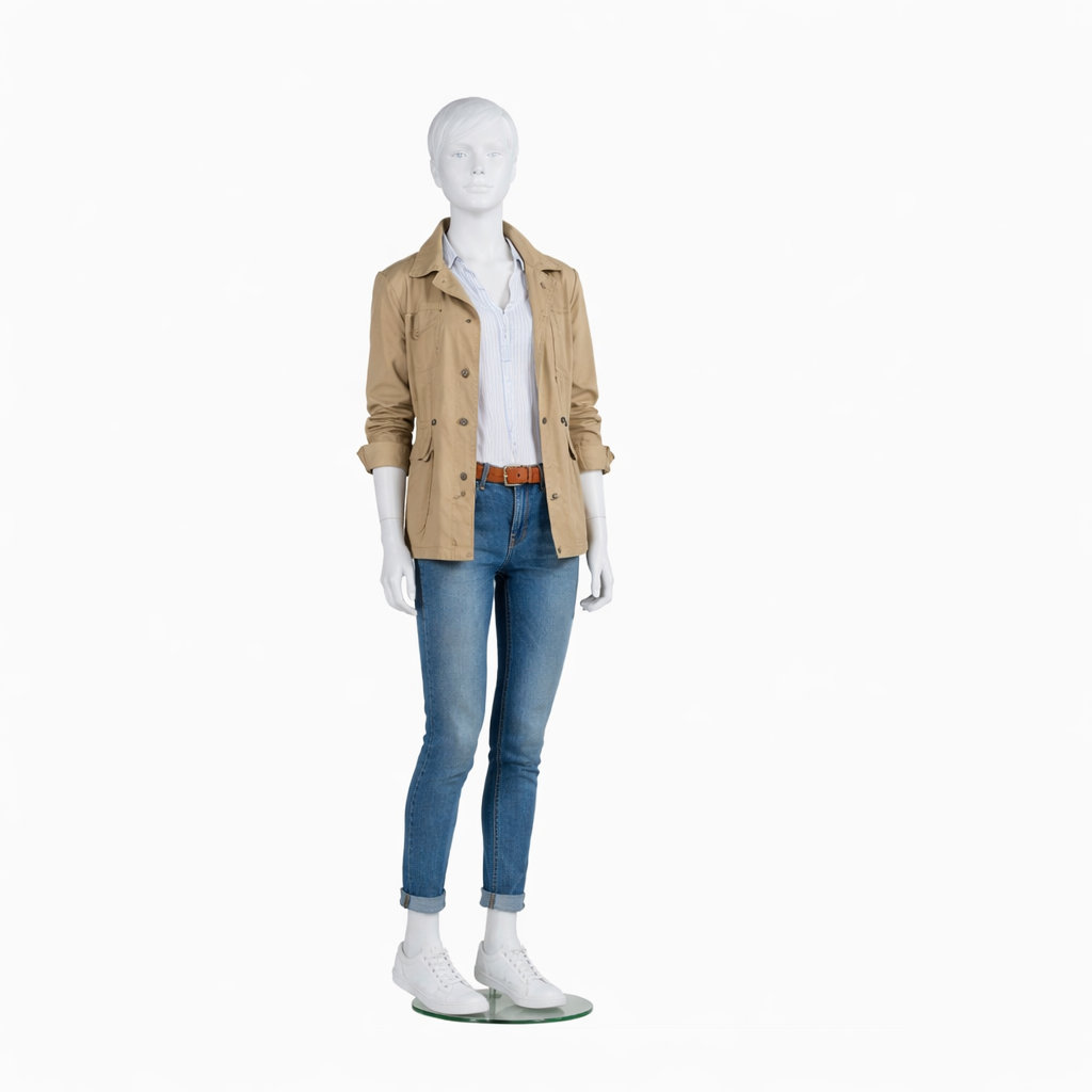 - Lieferumfang: Mädchen-Schaufensterpuppe inkl. runder Glasstandplatte