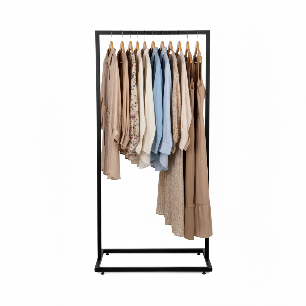 Dieser stabile Textilständer überzeugt mit klarer Formgebung und funktionalem Design – perfekt geeignet für eine strukturierte und aufmerksamkeitsstarke Warenpräsentation. Mit einer Breite von 70 cm bietet er großzügigen Platz für Kleidung aller Art, von Jacken bis T-Shirts. Die Höhe von 150 cm sorgt dafür, dass auch längere Textilien optimal zur Geltung kommen.