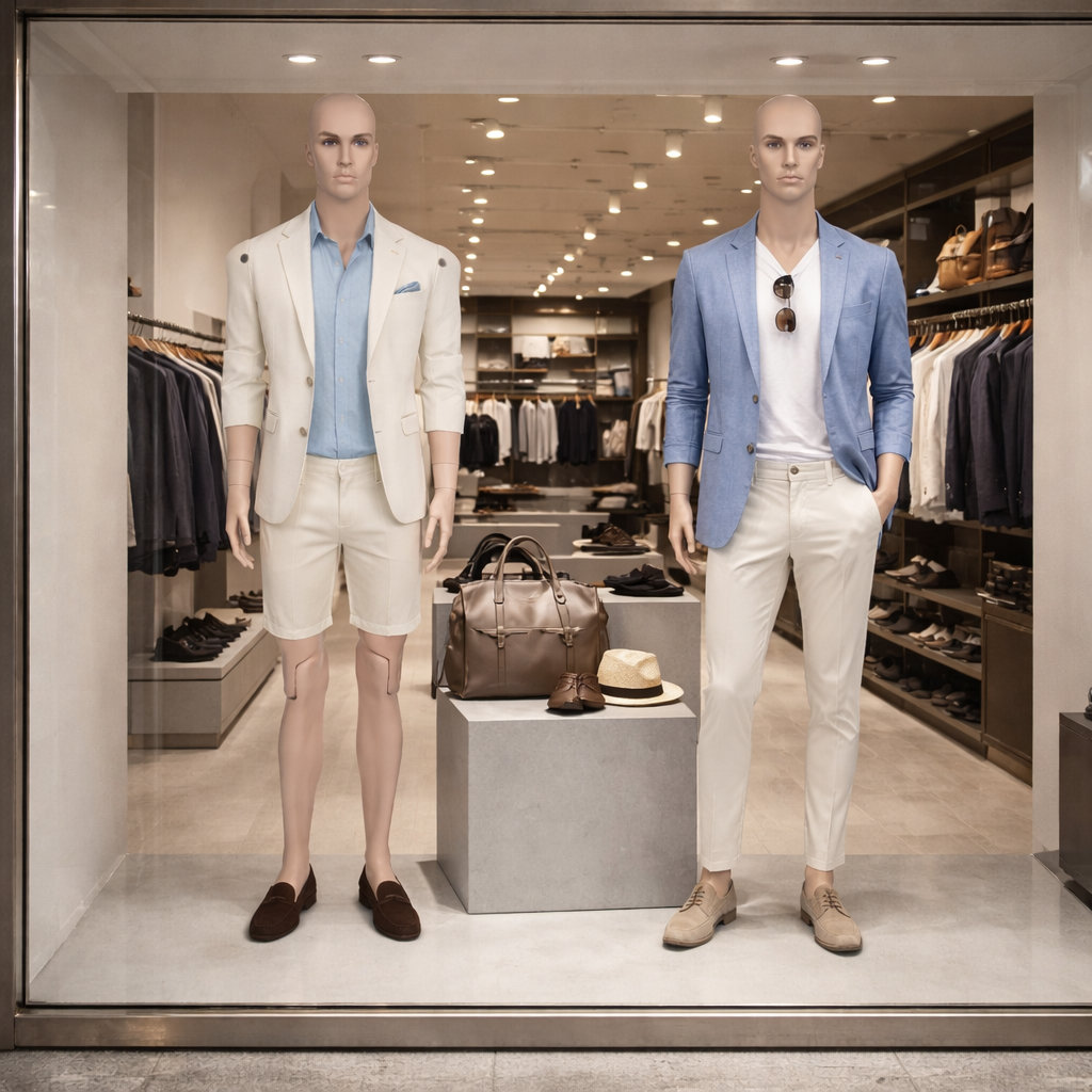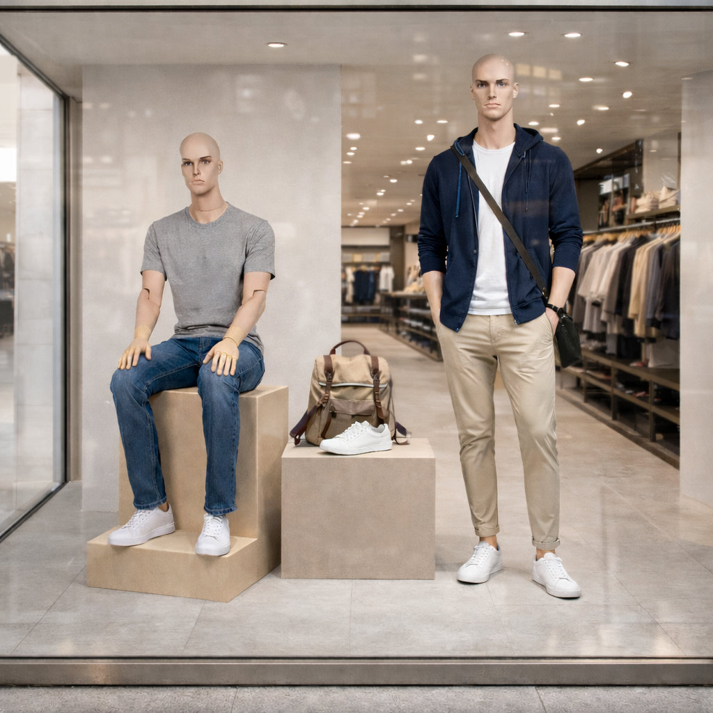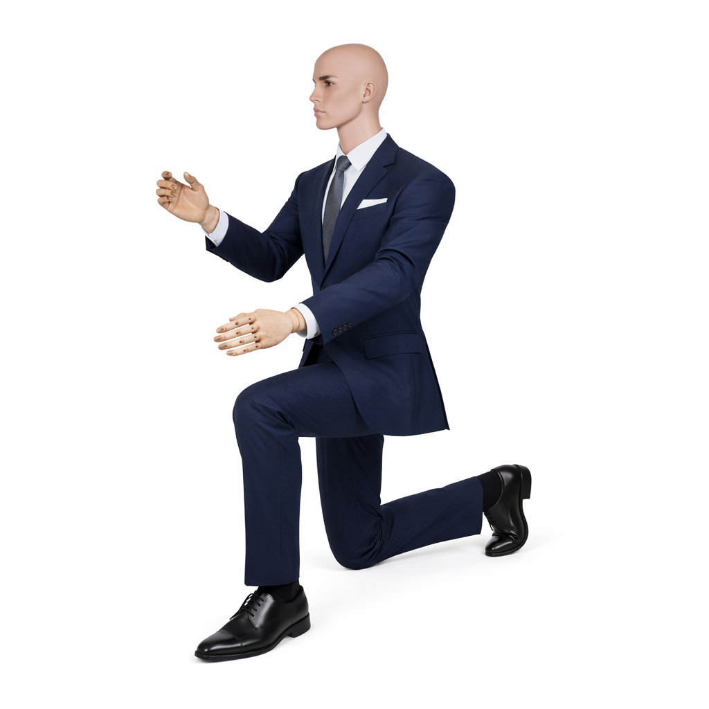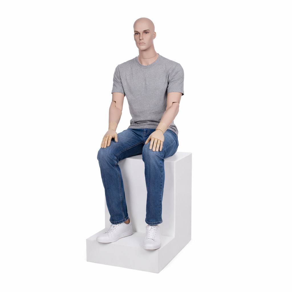 - Lieferumfang: vollbewegliche Schaufensterfigur inkl. robuster Metallstandplatte
