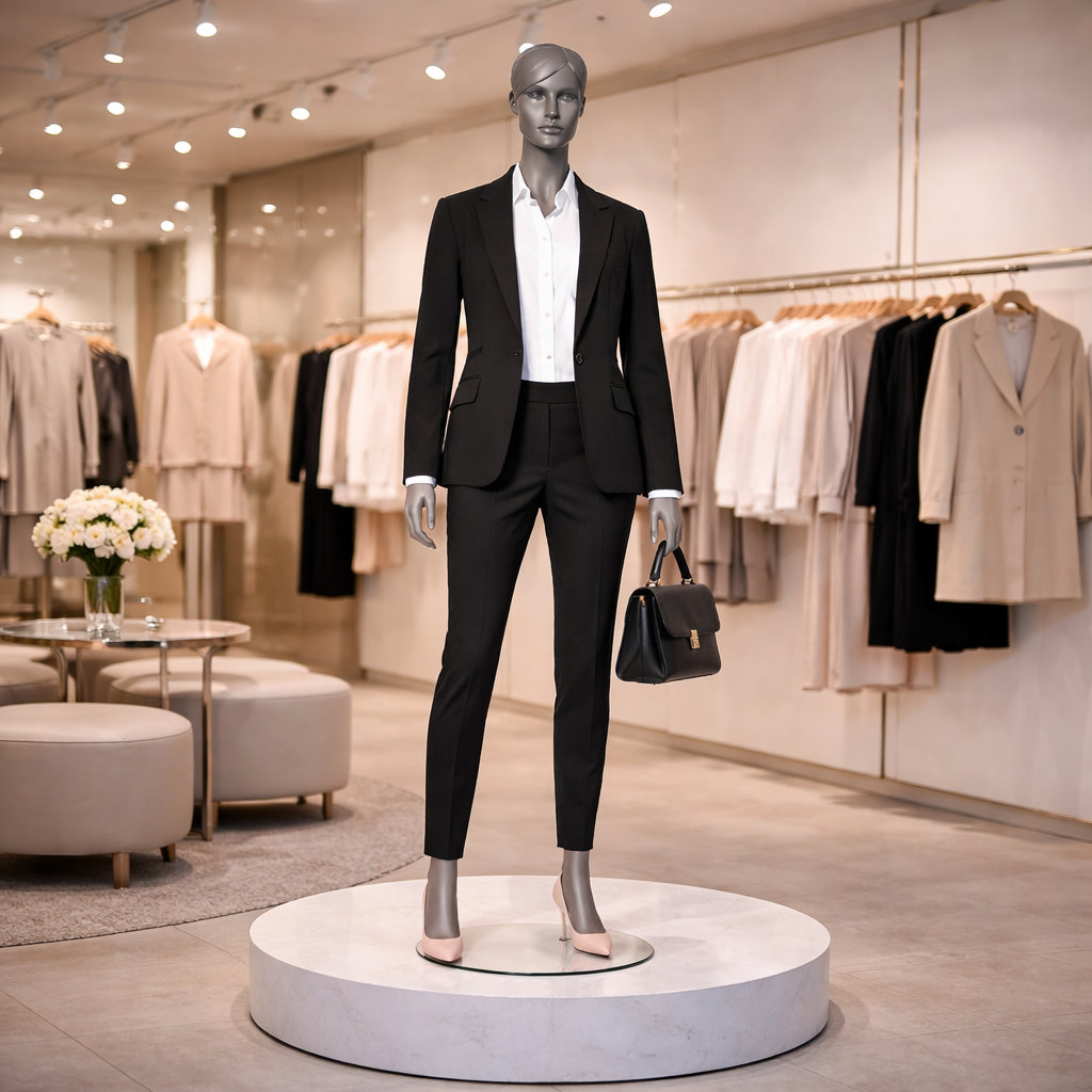 - Lieferumfang: Schaufensterpuppe inkl. runder Glasstandplatte